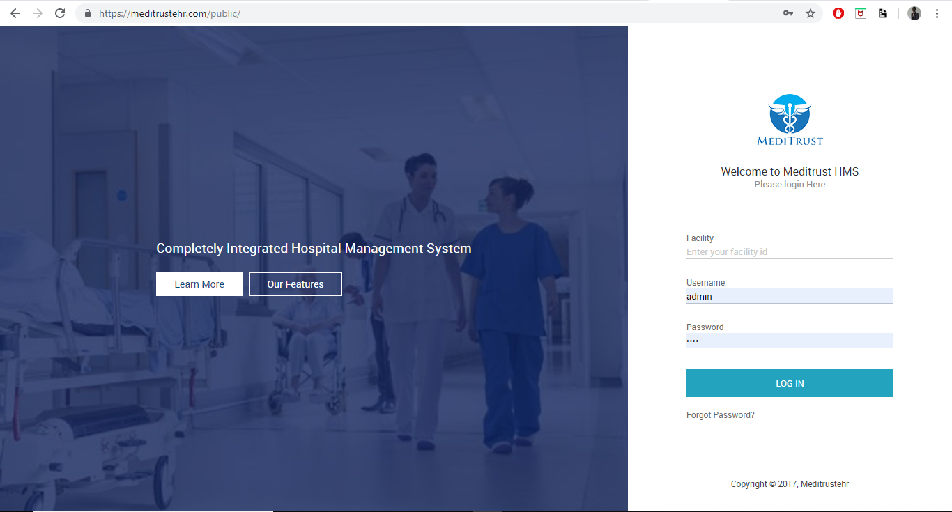MediTrust HMS is a Hospital Management System capable of handling the workflows of any hospital from the smallest Clinics to Largest Hospitals. This cloud based system can be tailored to the need of any hospital. Meditrust has an API that can be connect to by other applications. MediTrust HMS is designed to offer Health Information Technology as a Service (HITaaS). View detail
